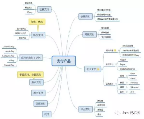 在不同的公司由于接入渠道和应用的差异,对支付产品分类略有不同。综合支付场景和流程,支付产品可以分为如下几类: