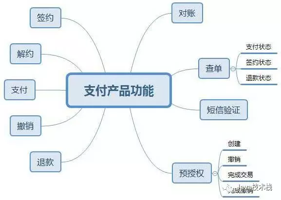 支付产品根据其支付能力,对外提供不同的功能。整体上来说,一般支付产品需要提供如下接口: