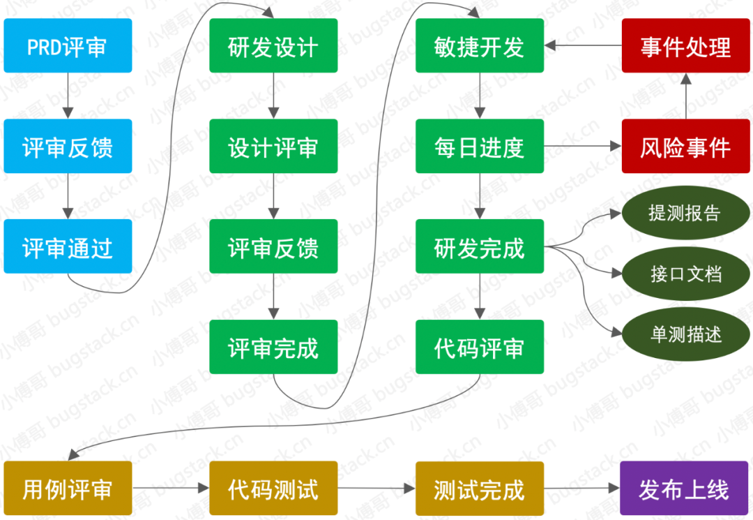 互联网中一般中大型项目的开发过程,涉及的流程一般较多,也需要合理的把控。否则可能会出现一些过程中的风险,导致项目不能如期上线。当然也并不是所有项目都需要这样处理,例如一些小功能的迭代和简单需求的开发,可以简化流程,快速迭代。 盖茅坑、猪圈、三居室还是不同的,不能一概而论 -