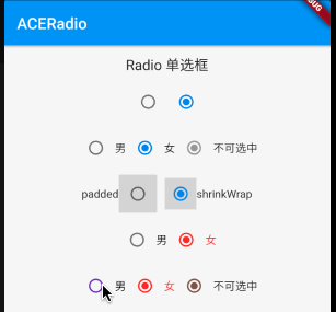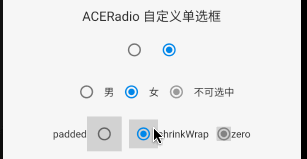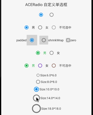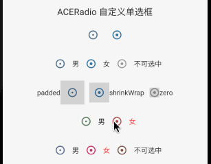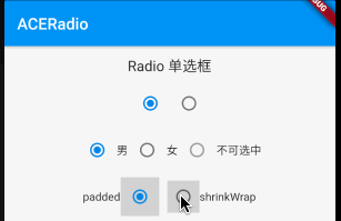 Radio 默认提供了两种最小可点击范围,但和尚想取消按钮整体外边距,于是添加一种 ACEMaterialTapTargetSize.zero 方式来仅设置按钮尺寸;
