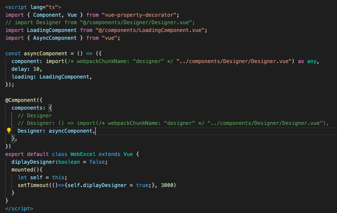 优化了路由加载,为了提升用户体验,进一步优化webExcel页面,开启组件懒加载,当需要Designer组件的时候再加载。
