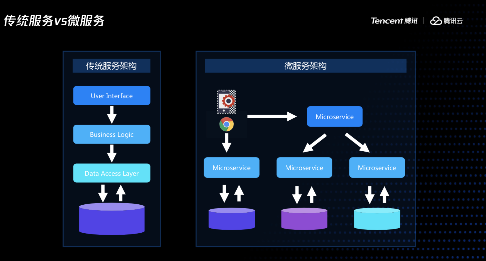 我们在讨论微服务时,其实讨论的是一个业务模块的微服务拆分是否彻底,这决定我们业务模块能否做到横向水平扩容、整体能否成为一个分布式系统。比如一个商城系统,库存服务逻辑变化了是否会影响到商品服务、订单服务,到双十一的时候,订单服务需要大幅扩容,我们能否只扩容一个服务、跟这个服务相关的数据库表而不影响其它服务。