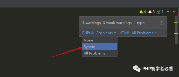 然后在右上方将分析问题改为只分析语法错误就可以了