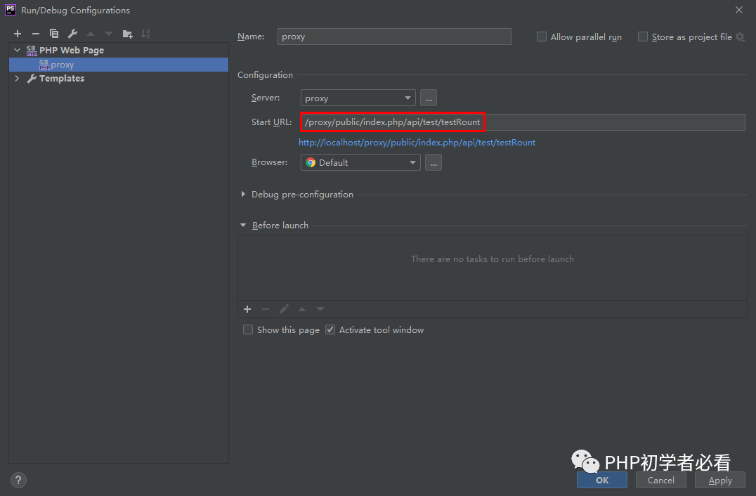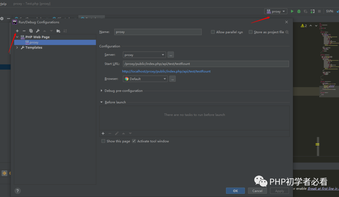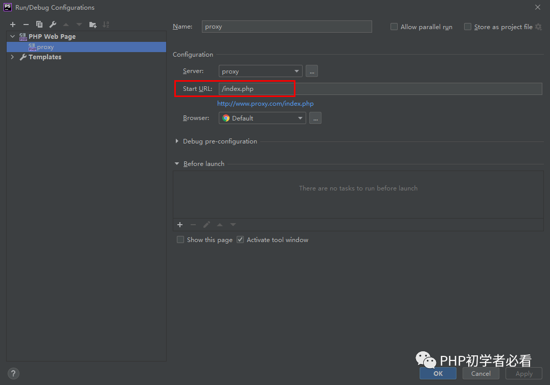 还是刚刚的操作,将php web page的开始地址配置为项目的入口位置即可。