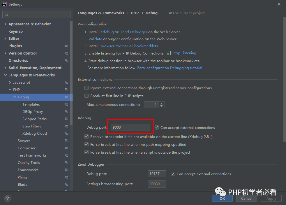 debug的端口号不用修改,在新版本的编辑器里,将9003作为debug的默认端口