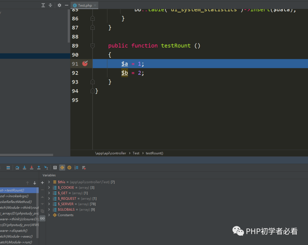 然后就可以直接进入到断点位置了