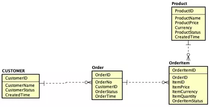- 域模型样例采用大家都熟悉的最小集的订单模型实现,包含商品、用户、订单和订单详情表。注意:此简化模型仅用做示意说明,和意图无关的大多数字段均省略,非严谨定义。