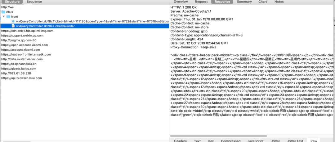 下面这个是请求当月票务信息,然而发现他返回的是一堆html节点