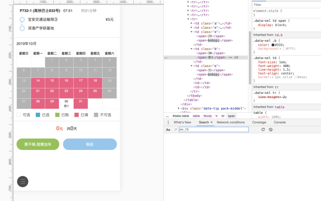样式名为 b则是我们要找的,代表可选,也就是有余票