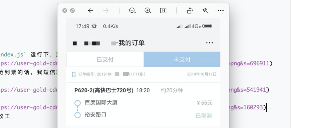 打开手机,看下订单信息
