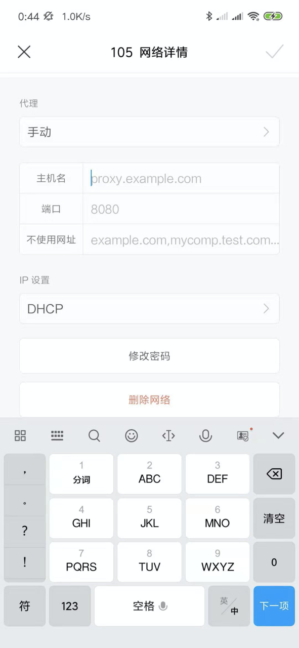 首先保证手机跟电脑连接的是同一个wifi,然后在wifi设置那里会有设置代理信息,比如我的猴米...不对,小米9手机!设置如下:
