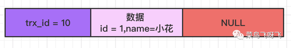 假设现有一条数据,它的 row_trx_id=10,数据的值为 data0,它的 roll_pointer 指针为 null。