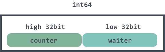 因为计数器counter可能为负数,所以int32来获取计数器的值,waiter不可能为负数,所以使用uint32来获取;