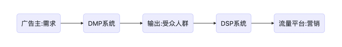 基本流程模式如下,注意这里的DMP平台具体归属哪里是不确定的,只是从模式上看需要借助DMP这样一个概念性质的平台对营销人群做标签分析。
