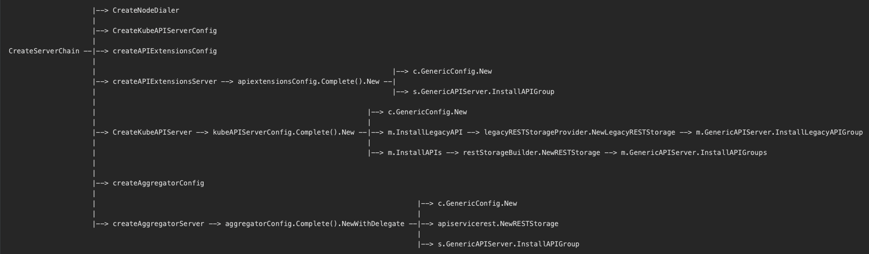 另外,kubeAPIServer是整个Kubernetes apiserver的核心,下面将要讲述的aggregatorServer以及apiExtensionsServer都是建立在kubeAPIServer基础上进行扩展的(补充了Kubernetes对用户自定义资源的能力支持)