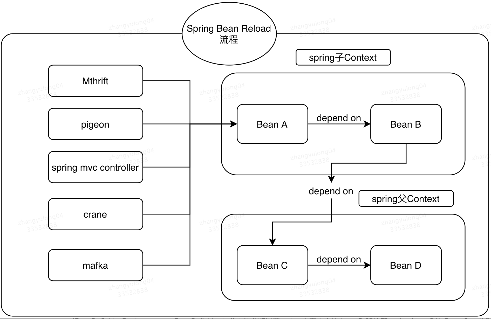 spring bean reload过程中,bean的销毁和重启流程,其中细节点涉及的比较多。主要内容如下图展示: