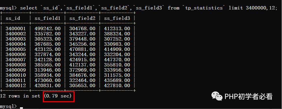 此时就可以知道的是,在偏移量非常大的时候,就像上图案例中的limit 3400000,12这样的查询。