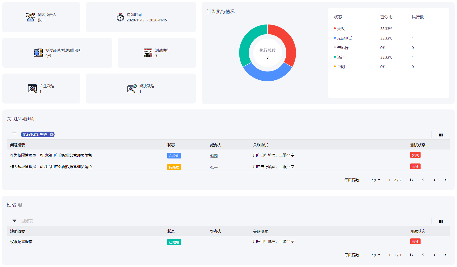 - 缺陷排行榜从非生产环境、生产环境两个维度展示责任人、创建人缺陷数量并按降序排列;