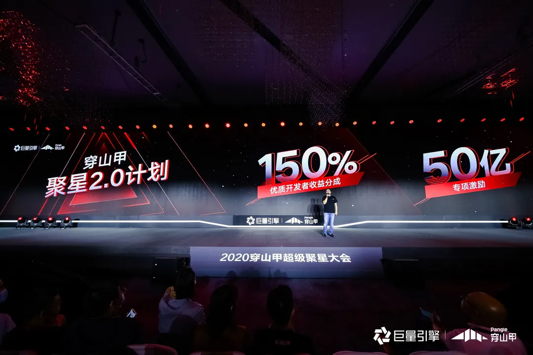 会上,穿山甲重磅推出了“聚星计划2.0”,在未来1年之中拿出50亿专项激励,面向全球优质开发者提供高达150%的分成补贴。针对高潜力开发者以及游戏开发者,穿山甲还推出“穿山甲新星助推计划”,成功参与活动的开发者可获得最高30%的额外分成奖励。这意味着优质开发者月收益补贴额度将达到180%。