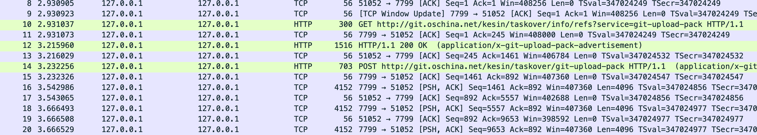 客户端接收到这个信息之后,就会打印信息并关闭连接,整个过程的数据均可以通过转包获取到,感兴趣的同学可以通过抓包来进一步加深了解 Git 协议的传输过程。