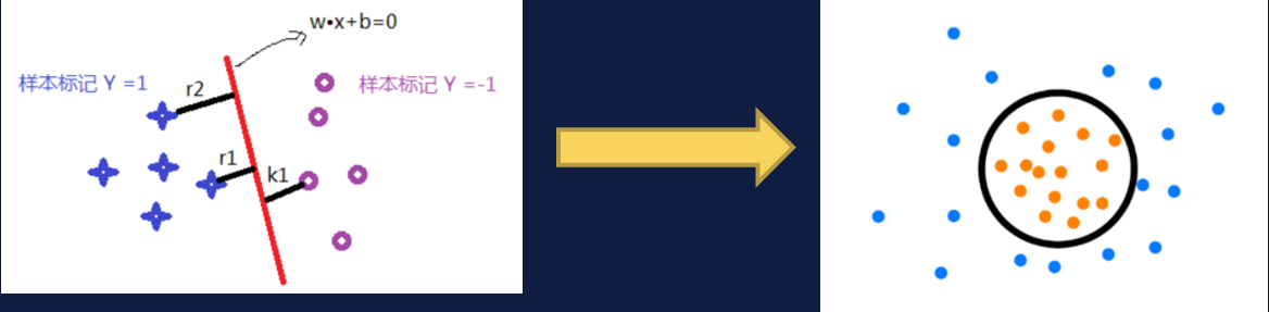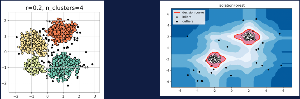 那分类模型具体是如何进行异常值检测的呢?简单举个例子,大家可以看一下上图。我们常规的 SVM 是使用一个超平面将正负样本分开。但是如果只有一个类,或者说负样本极少的时候要怎么办呢?我可以使用超球面将正样本包含,然后将超球面以外的当做异常样本,通过这种方式去进行异常值检测。