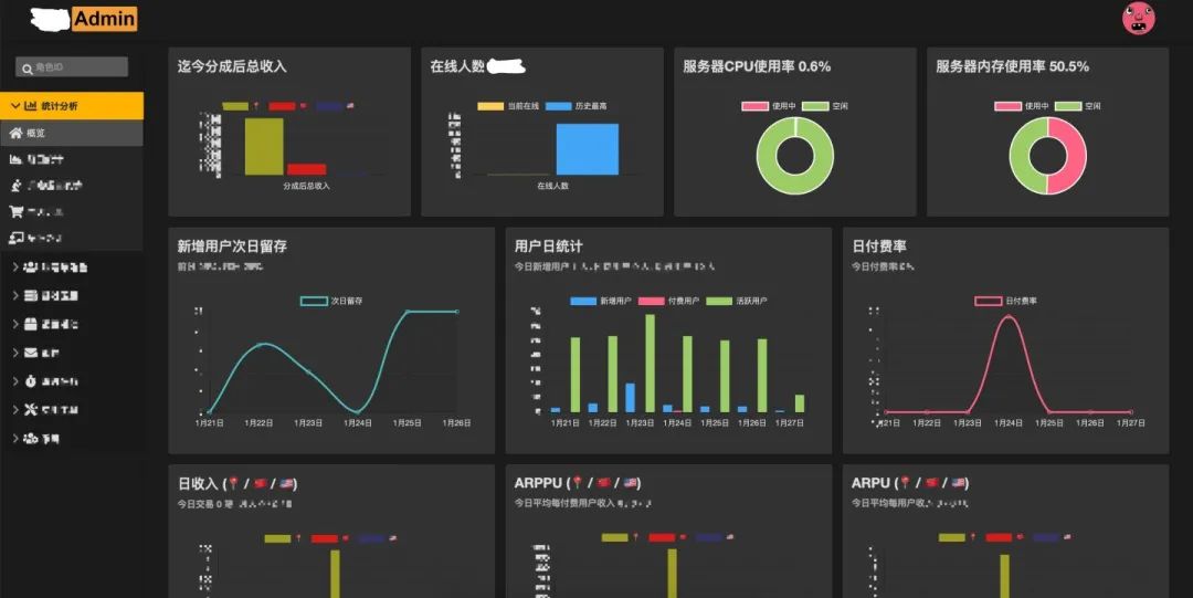 Admin 较祖传代码便利许多,移动端也可正常访问。统计数据更不用等凌晨恼人的任务,随时可查阅实时数据。 -