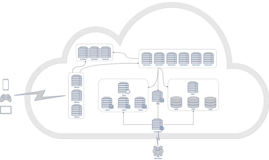 分区分服机制使得单个游戏逻辑服的用户量是可控的,单个物理服通常可以支承数个游戏逻辑服。