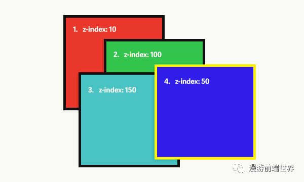 为了决定某个元素在 z 轴方向上的位置,CSS 允许我们为 z-index 属性设置三种值[4]:
