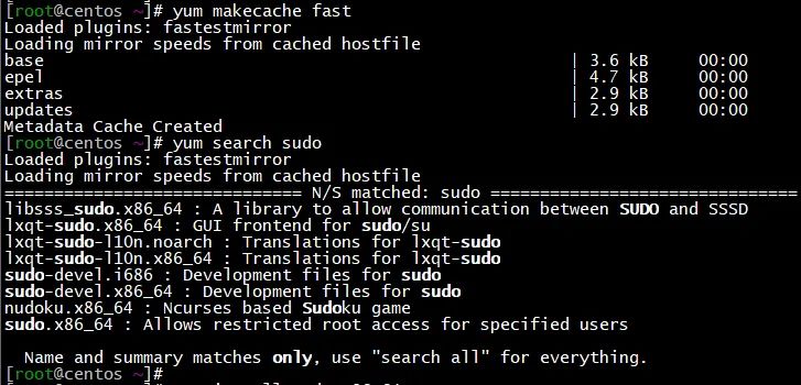 yum search sudo