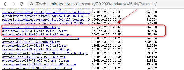 可以在yum源站点update仓库里看到1/26号刚更新了这个sudo版本