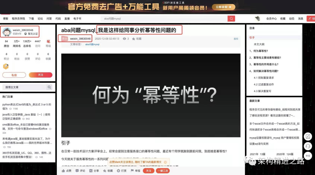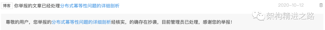 事情起因是2020年10月份左右,接触了Gitchat,并投稿了自己在公众号发布的一篇原创文章《我是这样给同事分析幂等性问题的》,结果被其审核编辑判为存在有雷同文章。