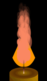 如上图,整个蜡烛的骨架,出去火焰的部分很简单,掠过不讲。主要来看看火焰这一块如何生成,并且如何赋予动画效果。