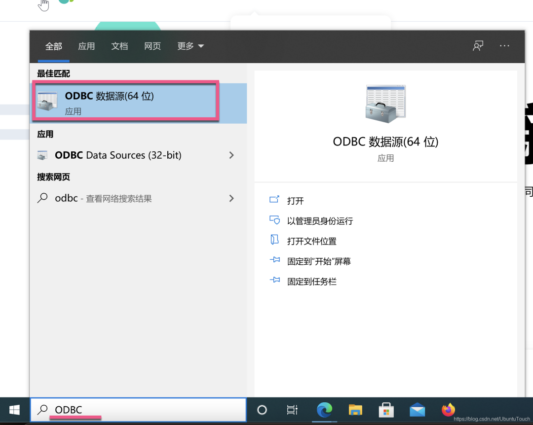 我们搜索 ODBC,并点击 “ODBC 数据源(64位)”: