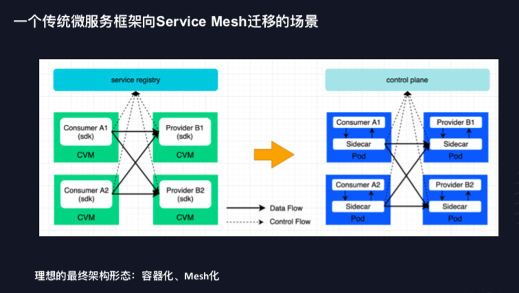 目前很多企业还是采用基于 SDK 的传统微服务框架进行服务治理,而随着 Service Mesh 的普及,越来越多的企业开始布局自己的 Service Mesh 框架体系,但多数企业刚开始不会激进地将所有业务迁移至 Serivice Mesh,像 Java 系应用依然保留原框架,而非 Java 系应用采用 Mesh 框架,不同开发语言可以用不同的技术框架,但业务不能被框架割裂,那在两种架构体系下应用服务如何互联互通?微服务如何统一治理?传统微服务又如何平滑迁移至 Service Mesh 呢?