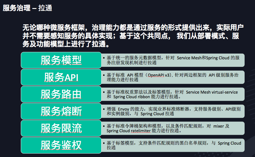 而对于服务路由、熔断、限流、鉴权几个治理能力的拉通我们的思路是类似的。