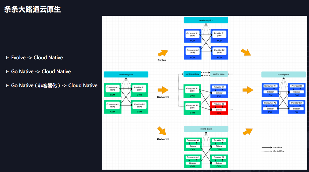 而在我们搭建好上面的 Mesh 微服务平台后,其实我们可以更平稳、更快速的通达 Service Mesh 云原生: