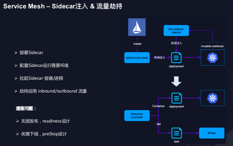 我们知道,要实现透明的 Mesh 服务治理,首先需要为应用额外部署一个 Sidecar(也就是 Sidecar 的注入),通过 Sidecar 来代理应用的进出流量、实现流量管理;