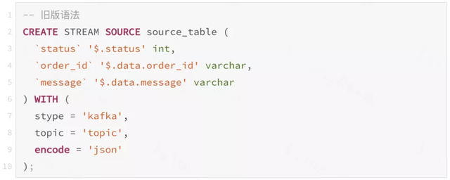 例如:我们在旧版本上使用 "json-path" 的库实现了 json 解析,通过在建表语句里定义类似 $.status 的表达式表示如何提取此字段。