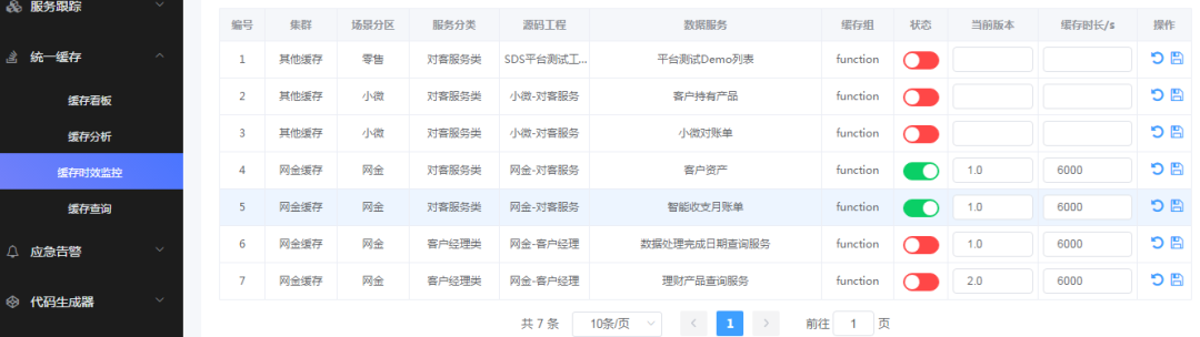 中台另一项与云化运行结合紧密的小工具是可视化的缓存热管理工具,针对配置有缓存组件的微服务,支持在应用运行阶段,动态调整缓存时效和缓存开关,同时配备缓存KV检索看板和缓存使用分析等辅助功能。