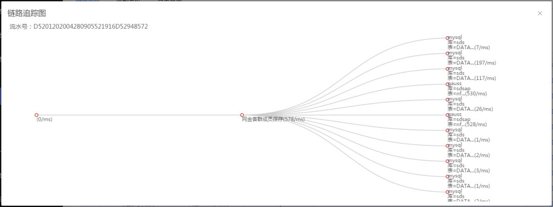同时针对数据中台微服务的业务特性(主要为数据类服务),在链路跟踪体系中增加对数据存储层访问与数据返回量级的追踪,方便运营人员更全面了解每项微服务的健康状态。