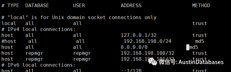 .pgpass 主要设置 repmgr 账号,并且replication也是通过repmgr来进行控制