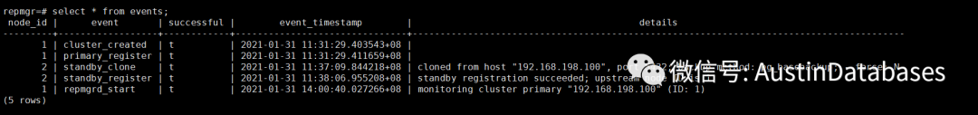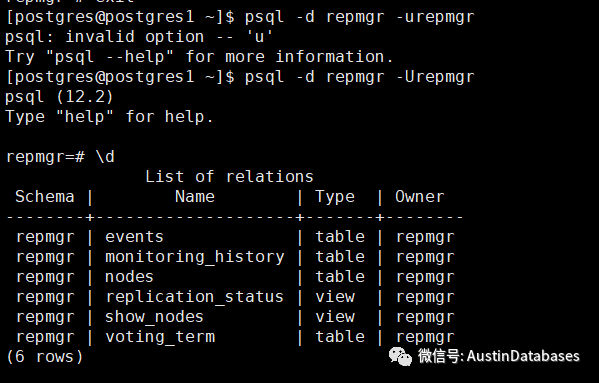 对于REPMGR 来说安装完毕注册完毕后,会产生3个表2个VIEW