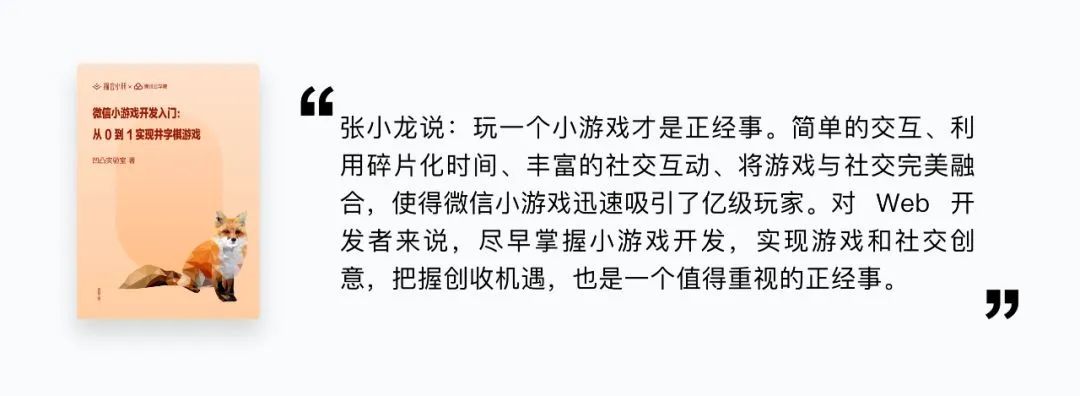 后来,凭着在游戏开发的沉淀,我也有机会在业界发声,参与撰写了掘金小册《微信小游戏开发入门》[4],并进行了行业内的技术分享。