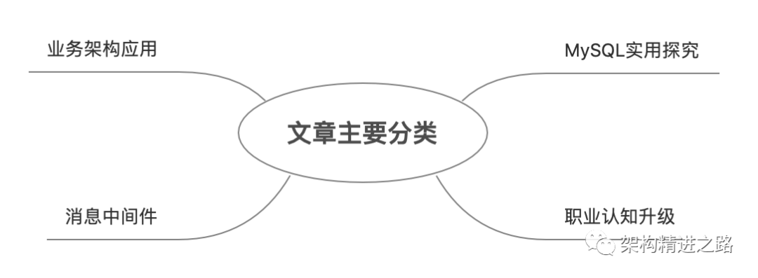 公众号专注:专注软件架构研究,技术学习与职业成长。内容涵盖:系统架构应用汇总、消息中间件、MySQL实用探秘、职业认知升级 四大模块,大家可以在公众号底部菜单“精选专题”里随时查阅;