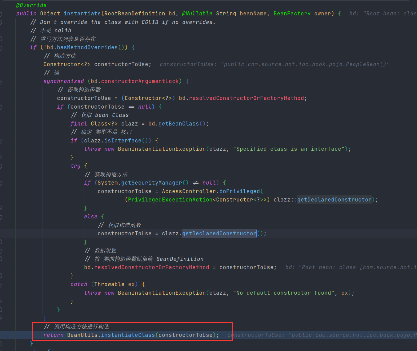 Constructor<?>[] declaredConstructors = beanClass.getDeclaredConstructors();