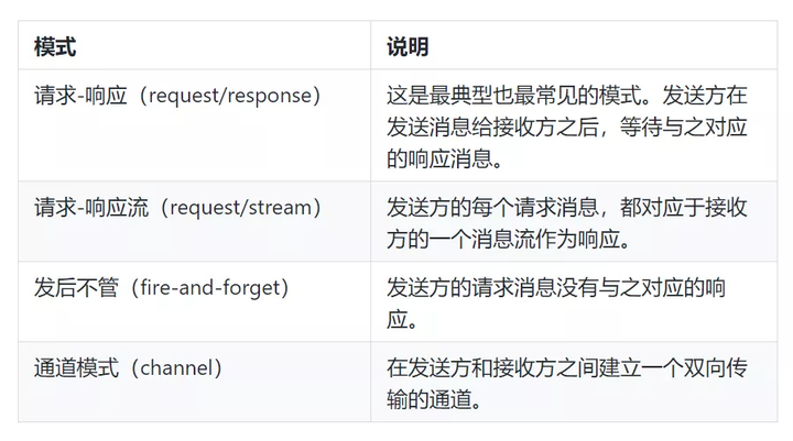 Rsocket提供了四种不同的交互模式满足所有场景: