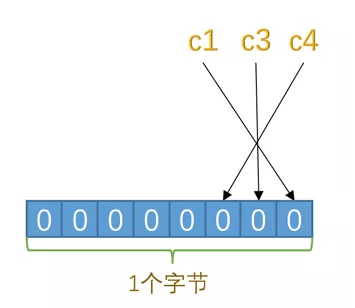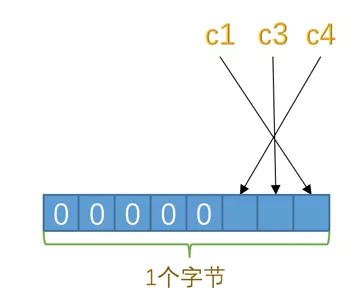 c1、c3、c4这3个列中c3和c4的值都为NULL,所以这3个列对应的二进制位的情况就是: