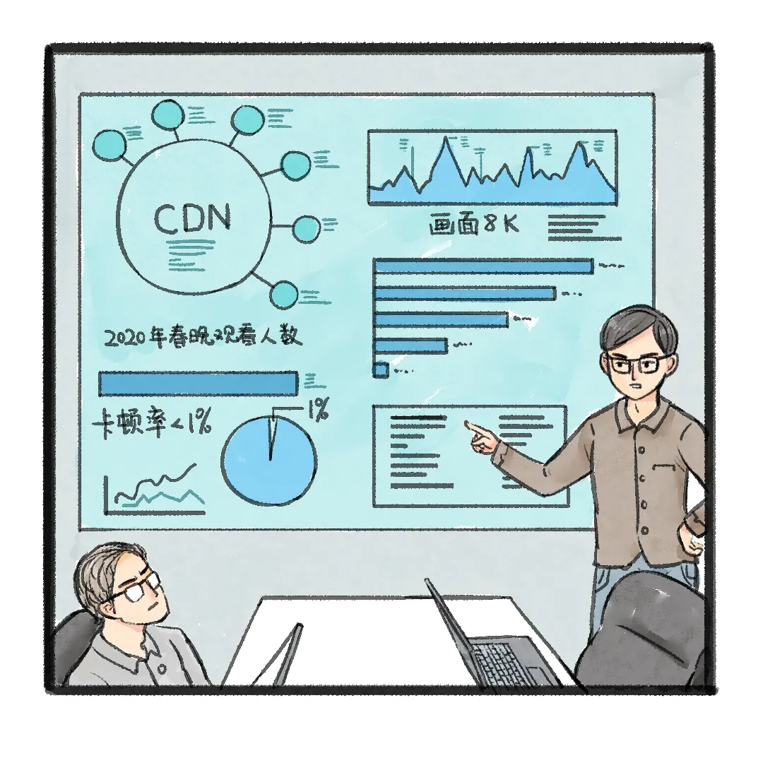 春晚当天,下午一点我们就进入了紧张的筹备,三四点钟最终的节目单就会给到我们,保障组的负责人会将他们预估的哪些节目会出现流量高峰,提前告知大家,就这样,我终于知道了很多当红的明星到底是谁,因为只要他们出现必定会带来一波又一波的流量高峰。