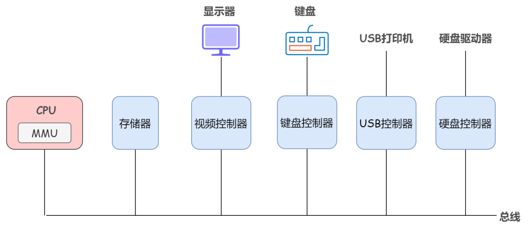 一台简单的个人计算机可以抽象为类似于下图中的模型: