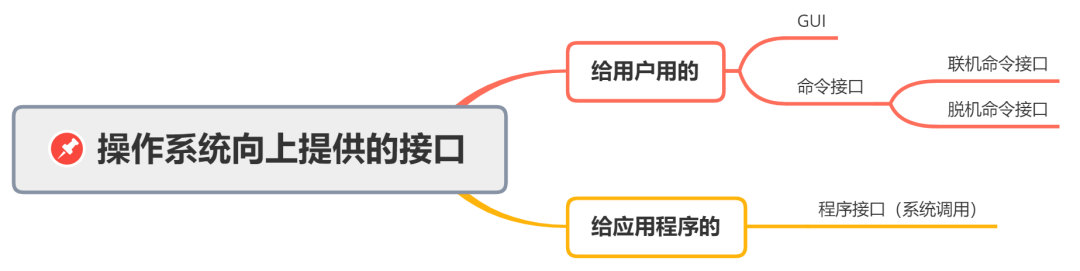 给用户提供的接口有图形界面 GUI 和命令接口,给应用程序提供的是「程序接口」,这个程序接口就是由一组系统调用组成的,是操作系统提供给开发人员使用的。可以理解为一种可供应用程序调用的特殊函数,「应用程序可以通过系统调用来请求获得操作系统内核的服务」。